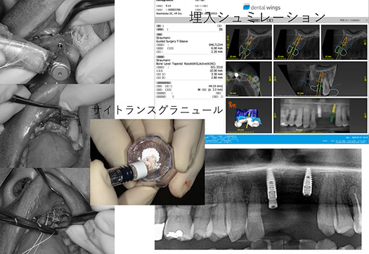 当院のインプラント治療はデジタルCTデータを基に専用ソフトにてインプラント手術をシミュレーションし、手術から最終補綴まで安心、安全そして長期安定性を目指し最新のプロトコルによるデジタルシステムで対応しています。また、骨の状態により骨増生、サイナスリフト、ソケットリフト、ボーンスプレッディング等、様々な対応をいたします。