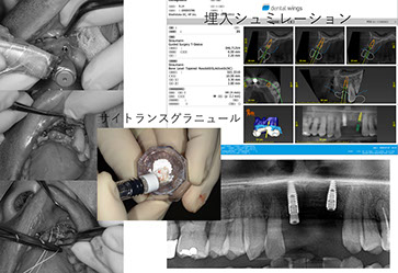 当院のインプラント治療はデジタルCTデータを基に専用ソフトにてインプラント手術をシミュレーションし、手術から最終補綴まで安心、安全そして長期安定性を目指し最新のプロトコルによるデジタルシステムで対応しています。また、骨の状態により骨増生、サイナスリフト、ソケットリフト、ボーンスプレッディング等、様々な対応をいたします。
